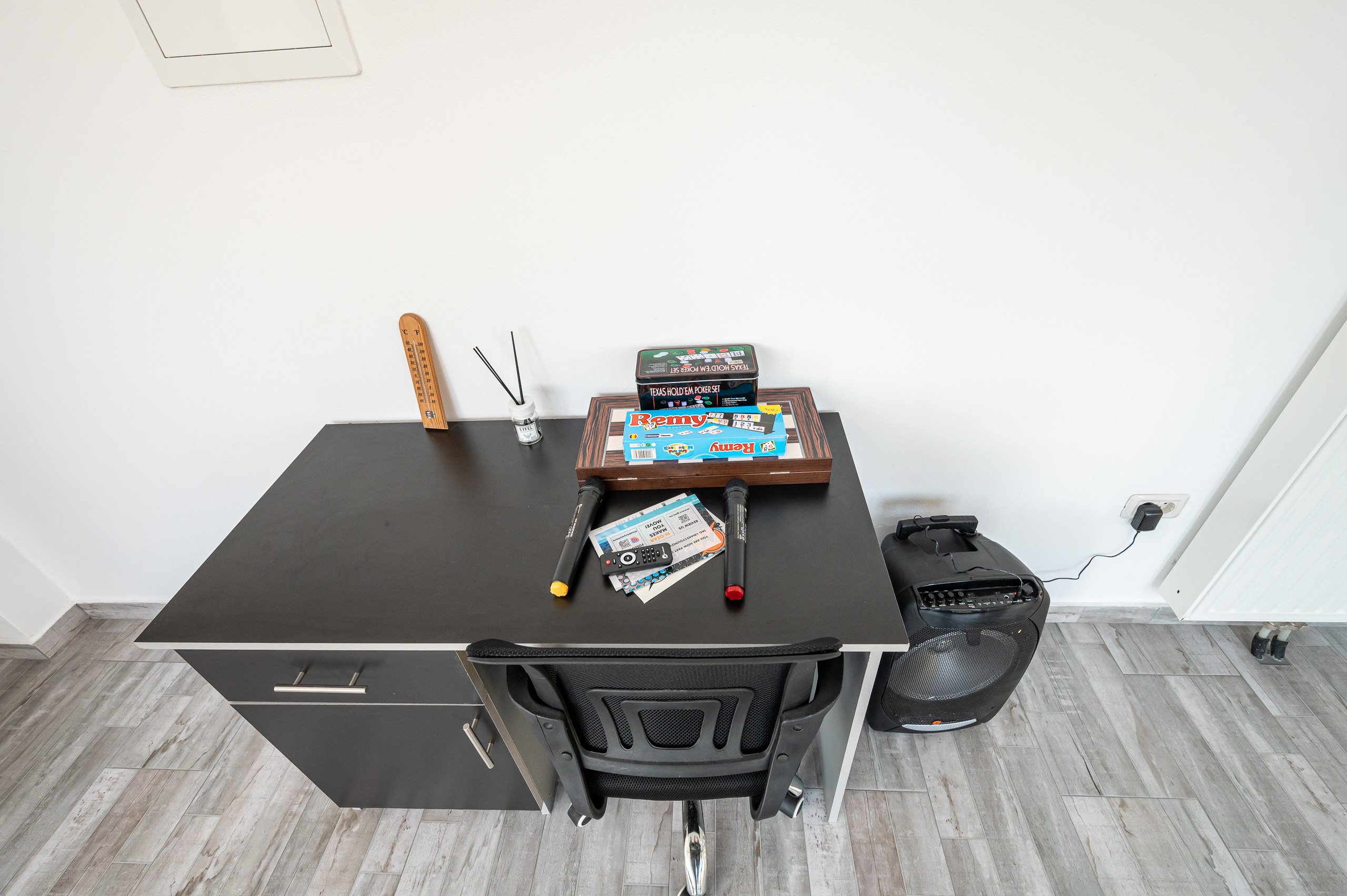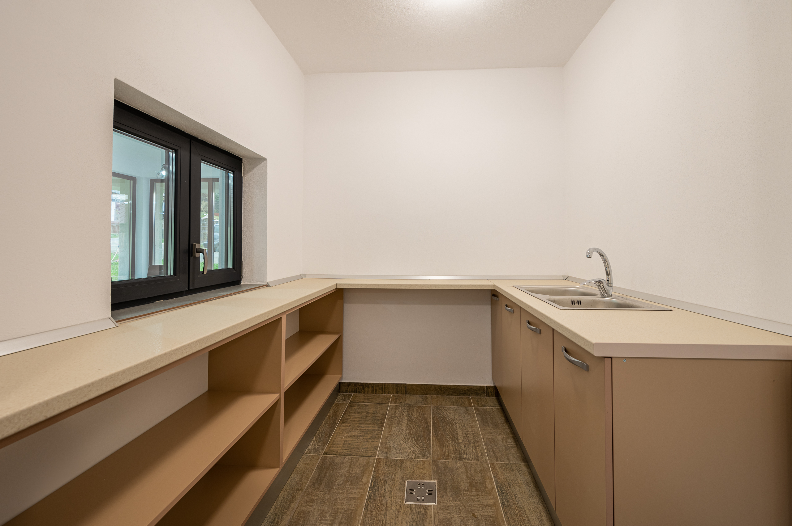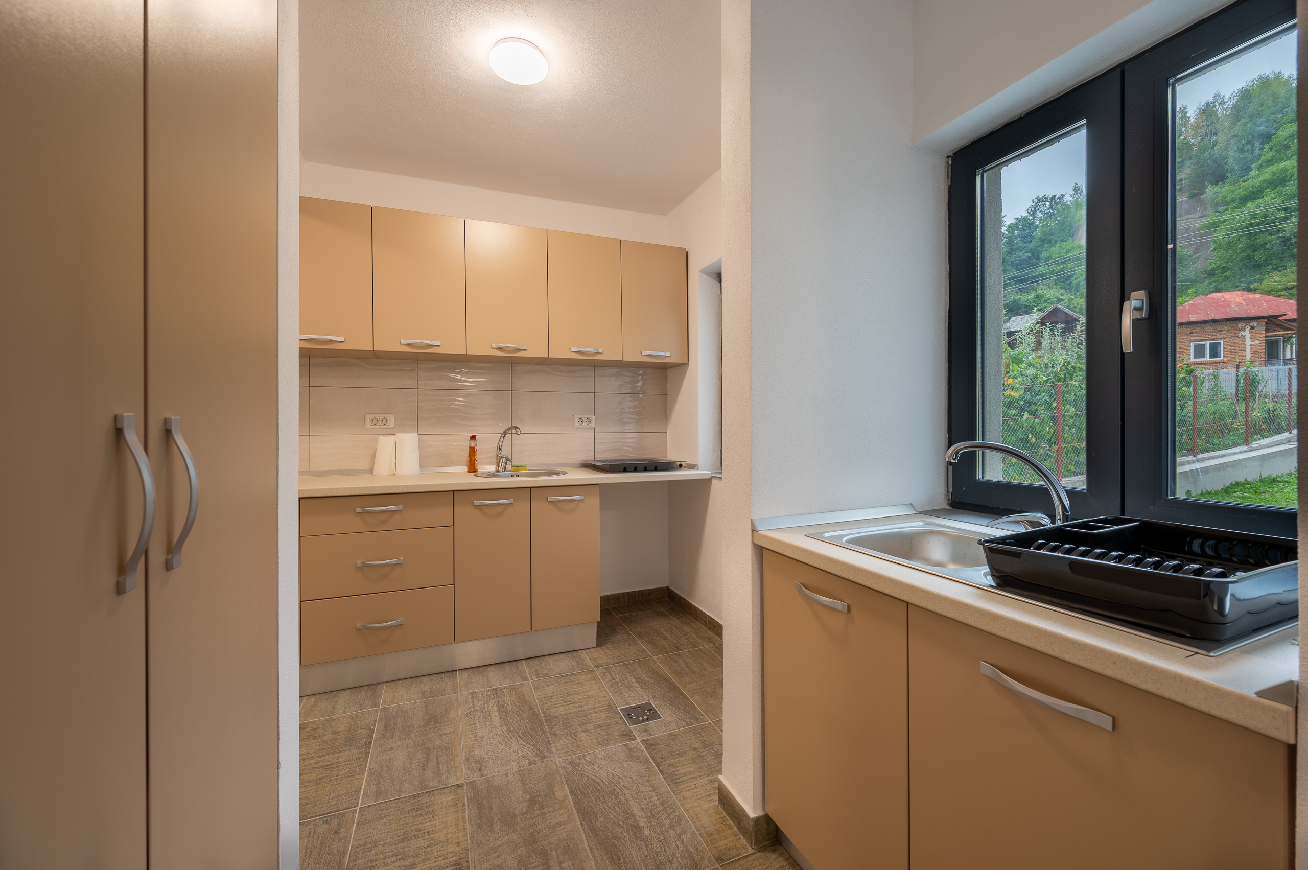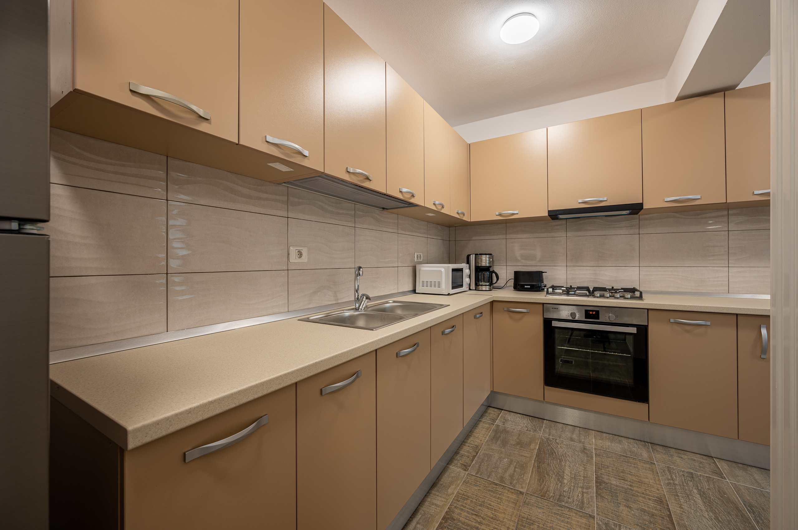 Bucataria este generoasa (28 mp), dotata cu masina de spalat vase, plita pe inductie, cuptor electric, 2 frigidere, filtru de cafea, prajitor de paine, cuptor cu microunde, vesela si tacamuri pentru 16 persoane.
