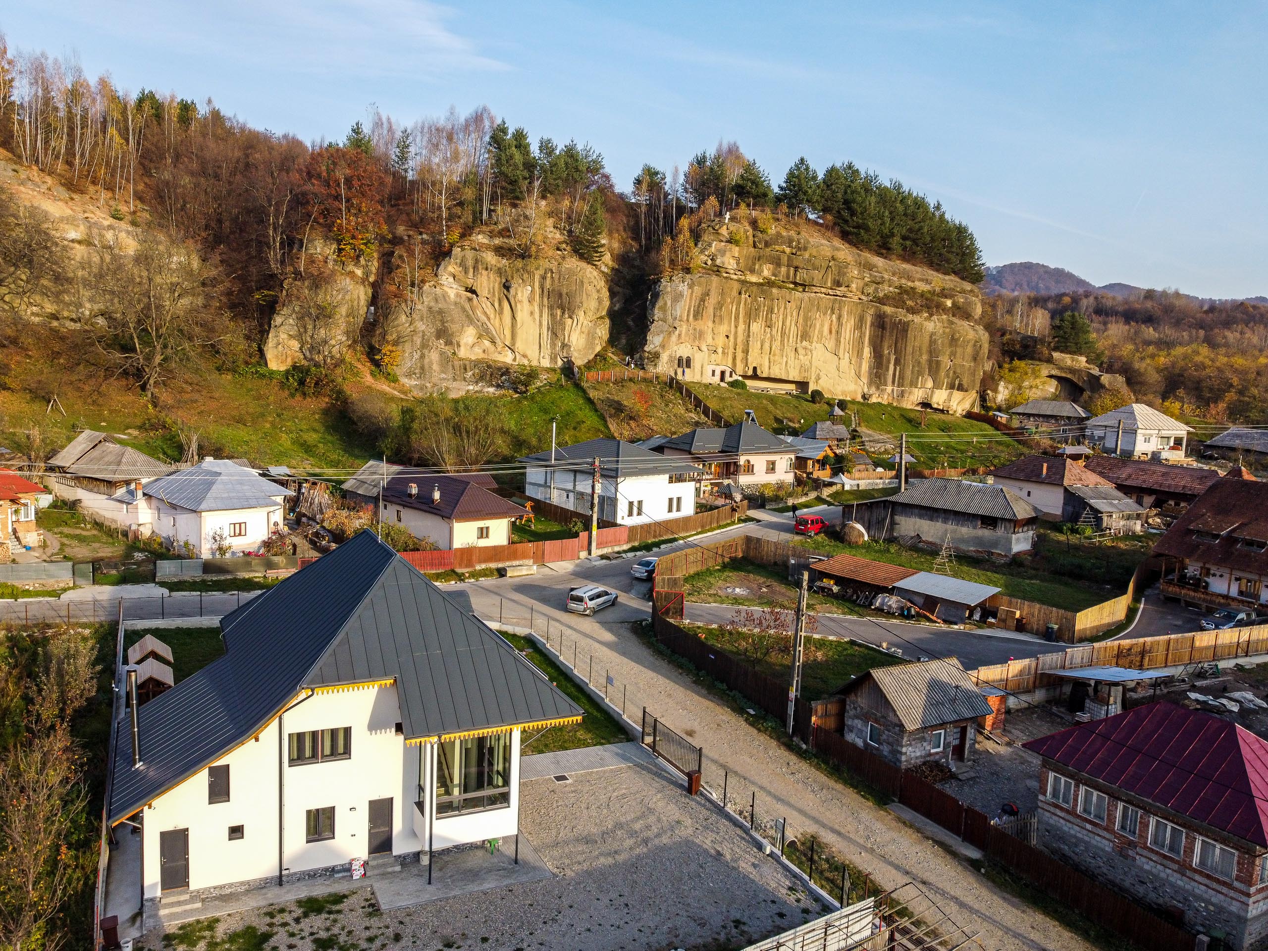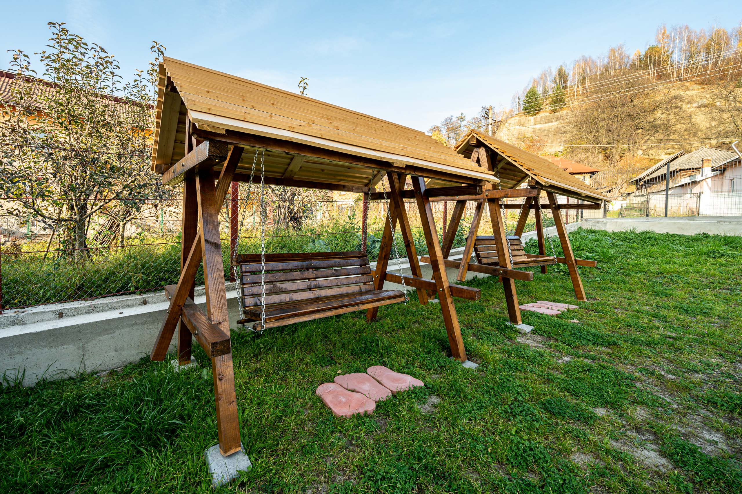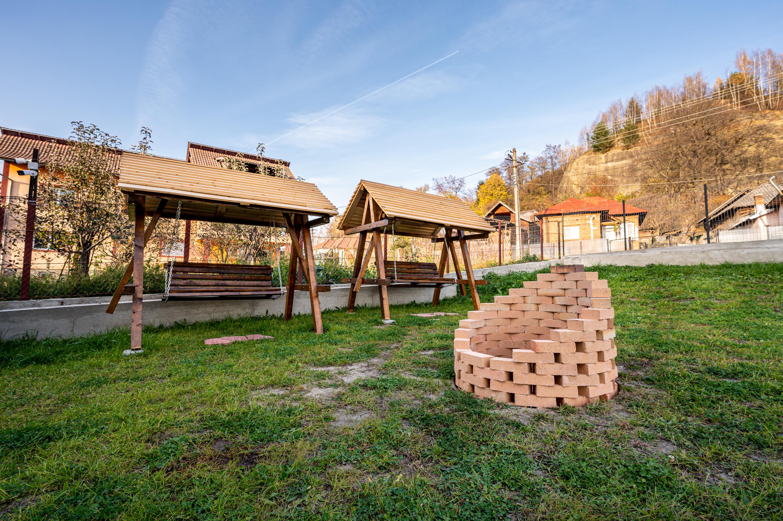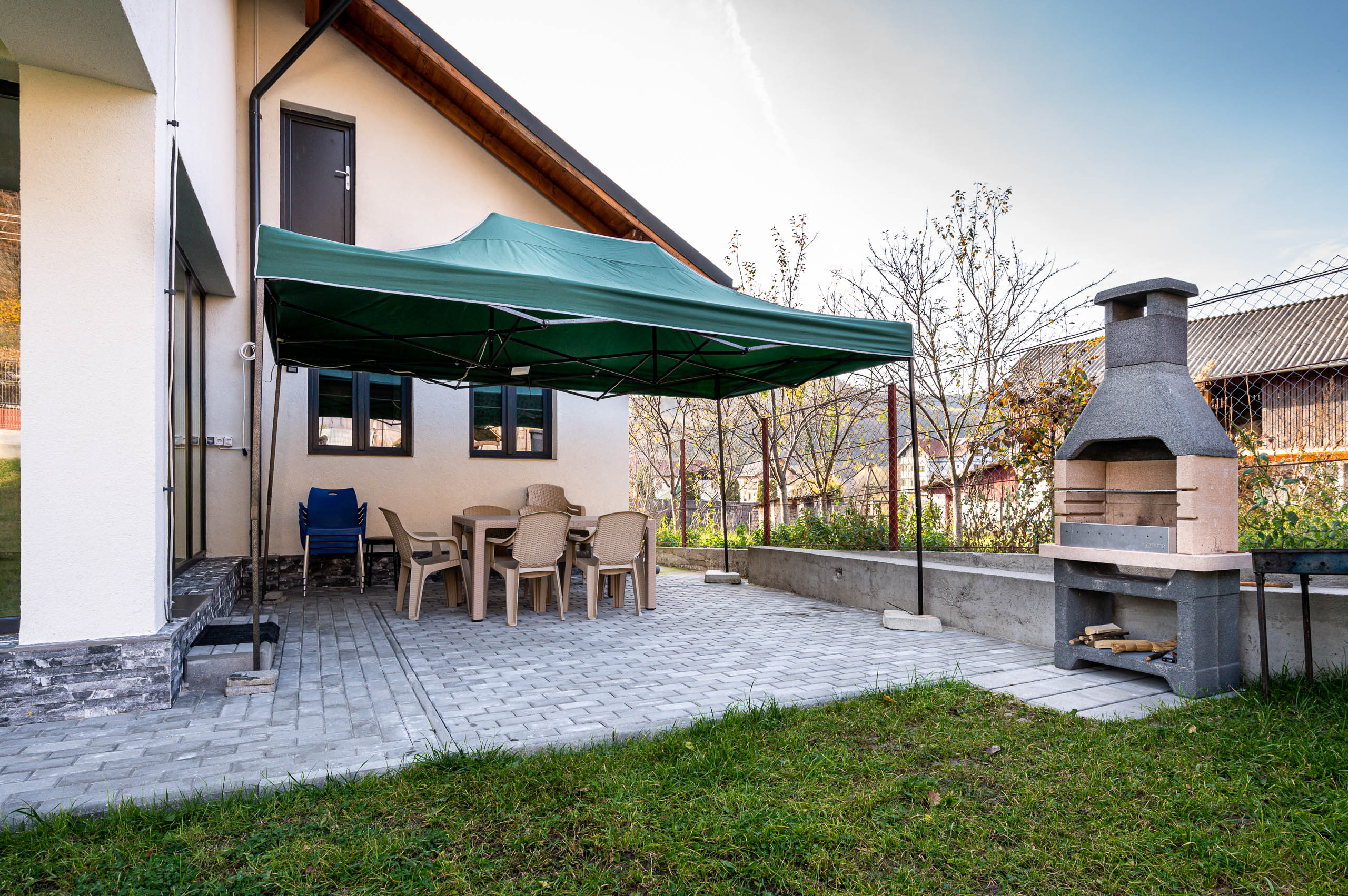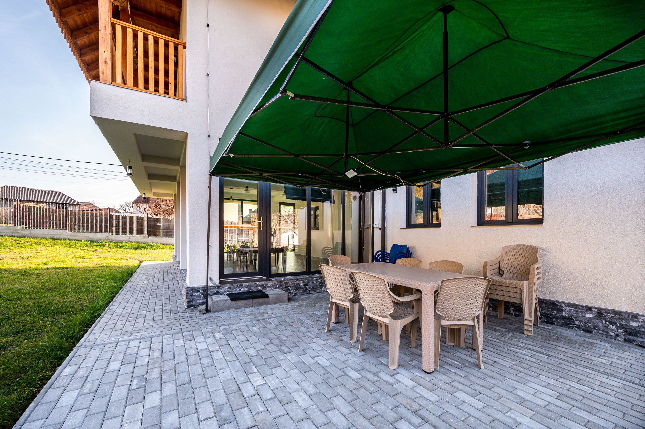 Curtea dispune de 4 locuri de parcare la interior, loc de joaca pentru copii, gratar exterior din caramida, loc pentru facut foc de tabara, 2 leagane de lemn, terasa acoperita si terasa in aer liber.