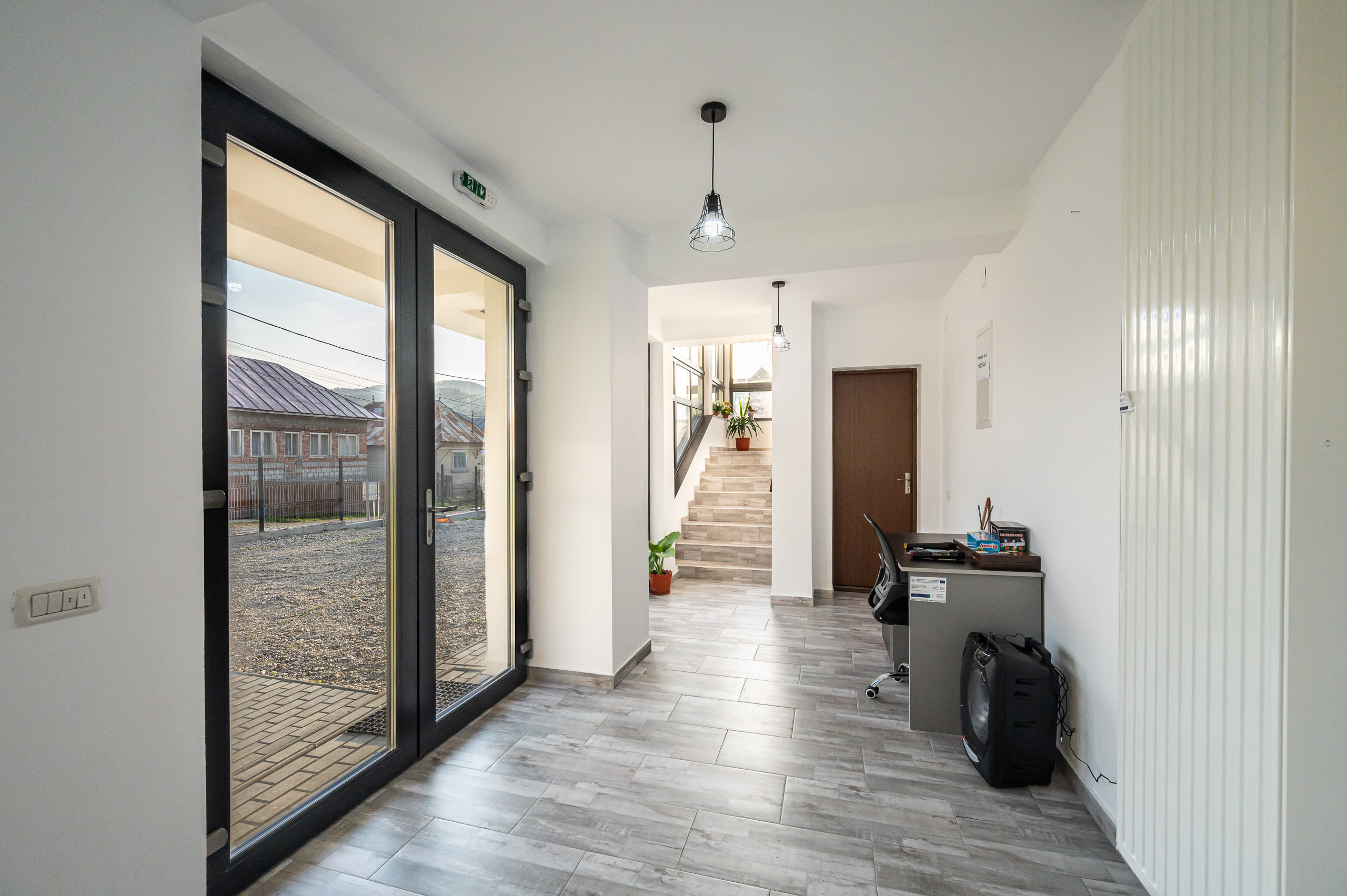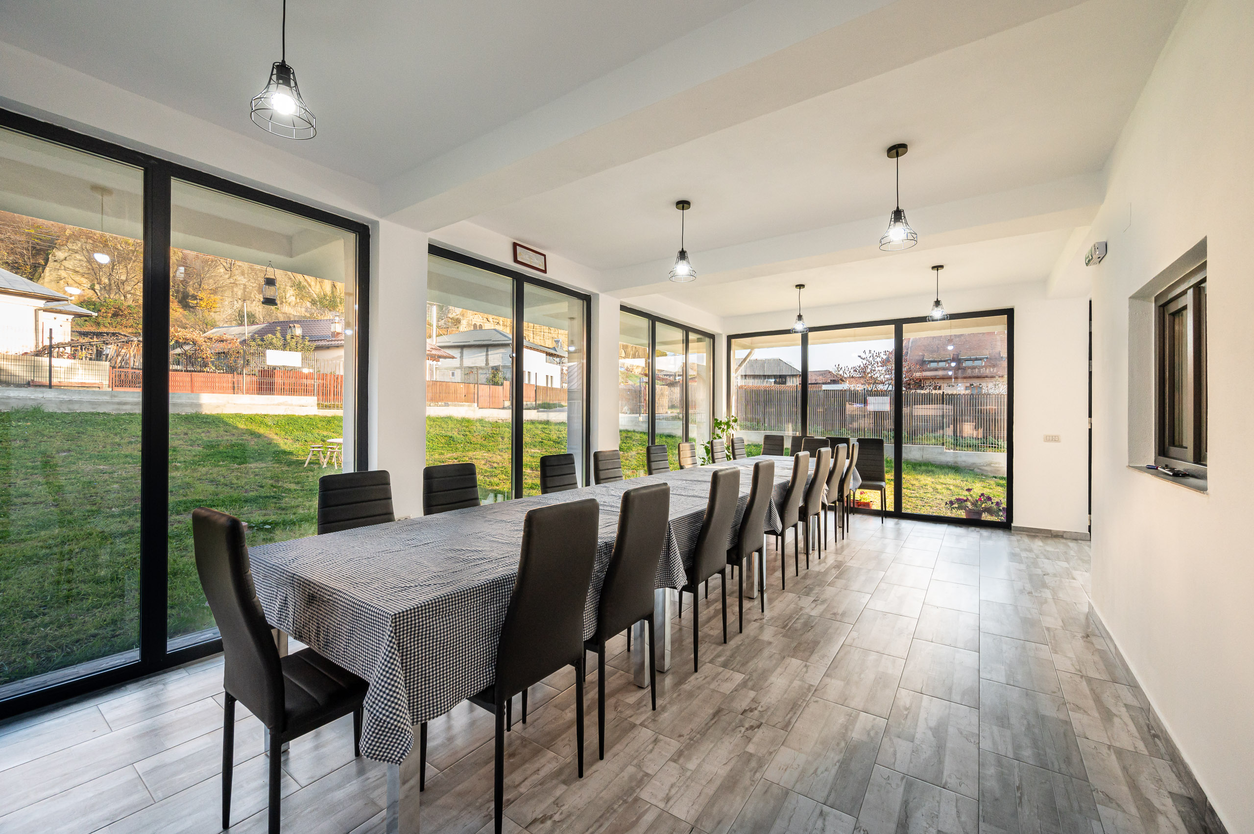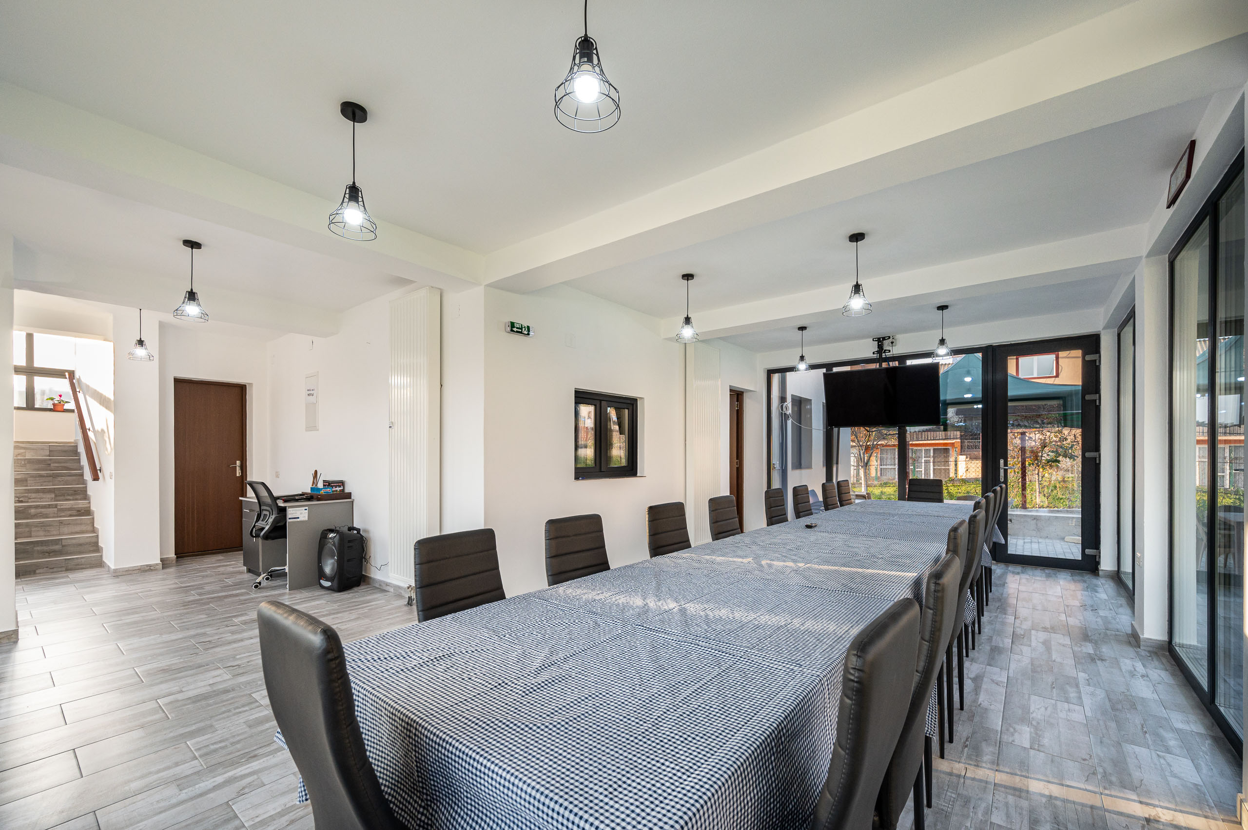 Salonul are o capacitate de 20 persoane, mese cu scaune, televizor LCD, sistem audio, grup sanitar la parter.